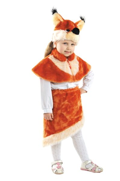 В комплекте костюма белочки Анжелочки имеется пелерина, юбочка и шапка-маска.
