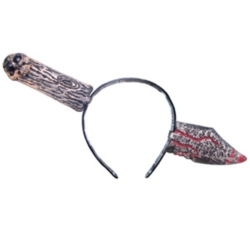 Ободок-имитация Нож выполнен из пластикового материала серого цвета. Ободок имитирует торчащий, с двух сторон головы, нож с кровавым подтеками.