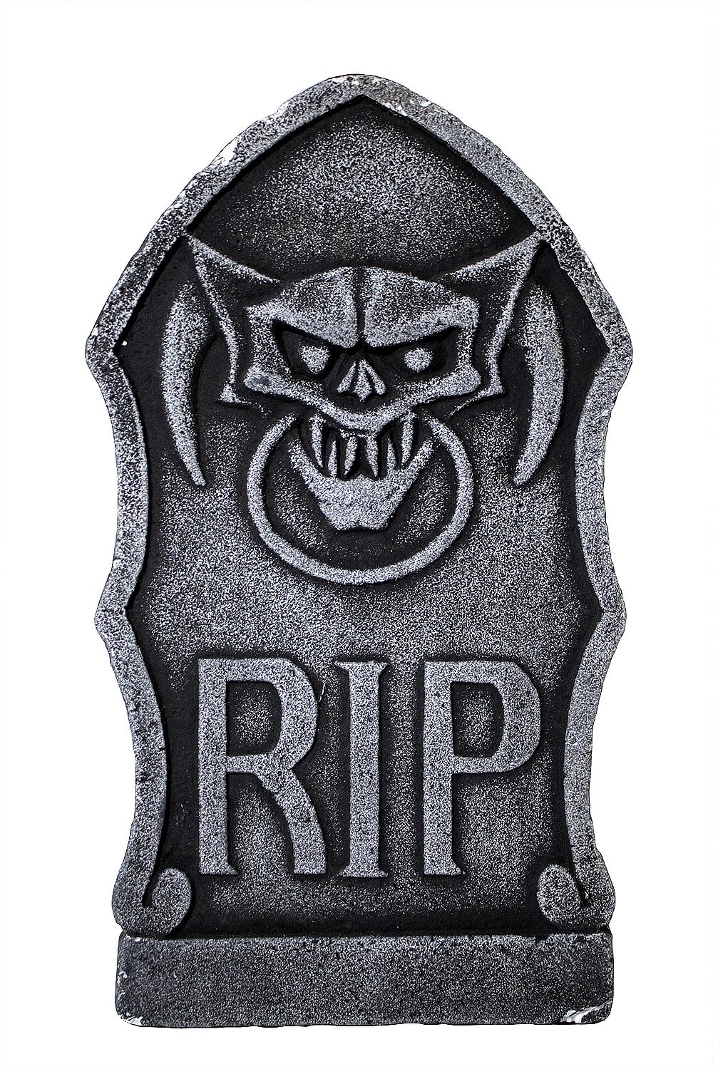 Надгробие серое с вампиром - небольшое надгробие, выполненное в виде каменной плиты с изображением вампира с кольцом и надписью RIP.Декорация выполнена из пенопласта серого цвета.