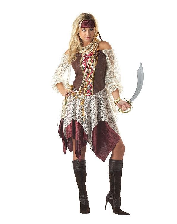 Костюм пиратки Южных морей включает в себя платье и повязку на голову. Саблю и прочие аксессуары вы можете подобрать отдельно, для того чтобы дополнить свой образ.
