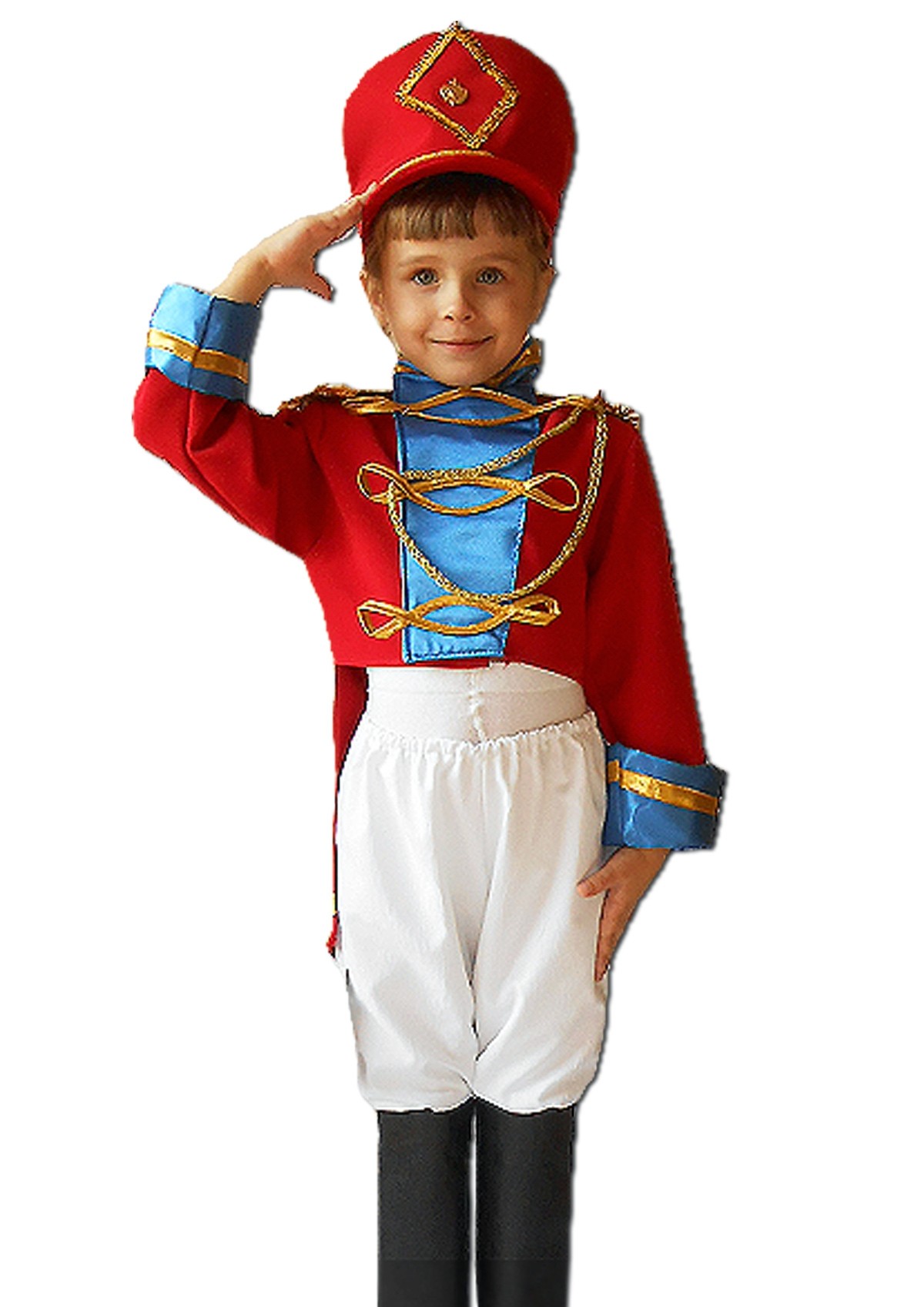 Костюм маленького гусара включает в себя белые штаны-галифе с высоким поясом и пришитыми накладками на обувь в виде высоких сапог. Также в комплект входит красный китель с голубыми манжетами и золотистой отделкой и красный кивер с небольшим козырьком.