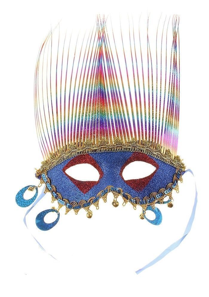 Карнавальная маска синего цвета с золотистой окантовкой и разноцветными волосами, торчащими вверх, сделает ваш образ ярким и привлекательным. Вы точно не останетесь не замеченным и будете весь вечер в центре всеобщего внимания. Размер маски 20х36 см. Также на нашем сайте вы можете приобрести различные аксессуары к маскарадной вечеринке.