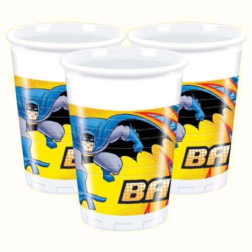 Пластиковые стаканы Бэтмен отлично подойдет для праздничного детского стола. Белые пластиковые стаканы дополнены ярким принтом.