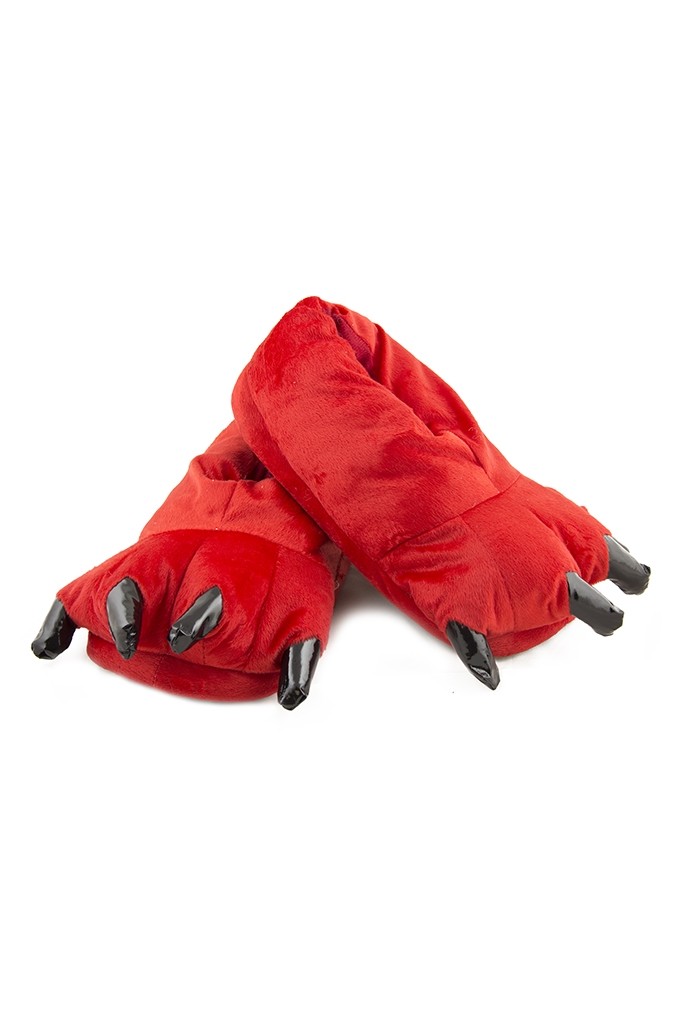 Красные мягкие лапы - тапки-лапы с черными когтями, которые станут идеальным дополнением к домашним кигуруми. Тапки выполнены из мягкого материала красного цвета.