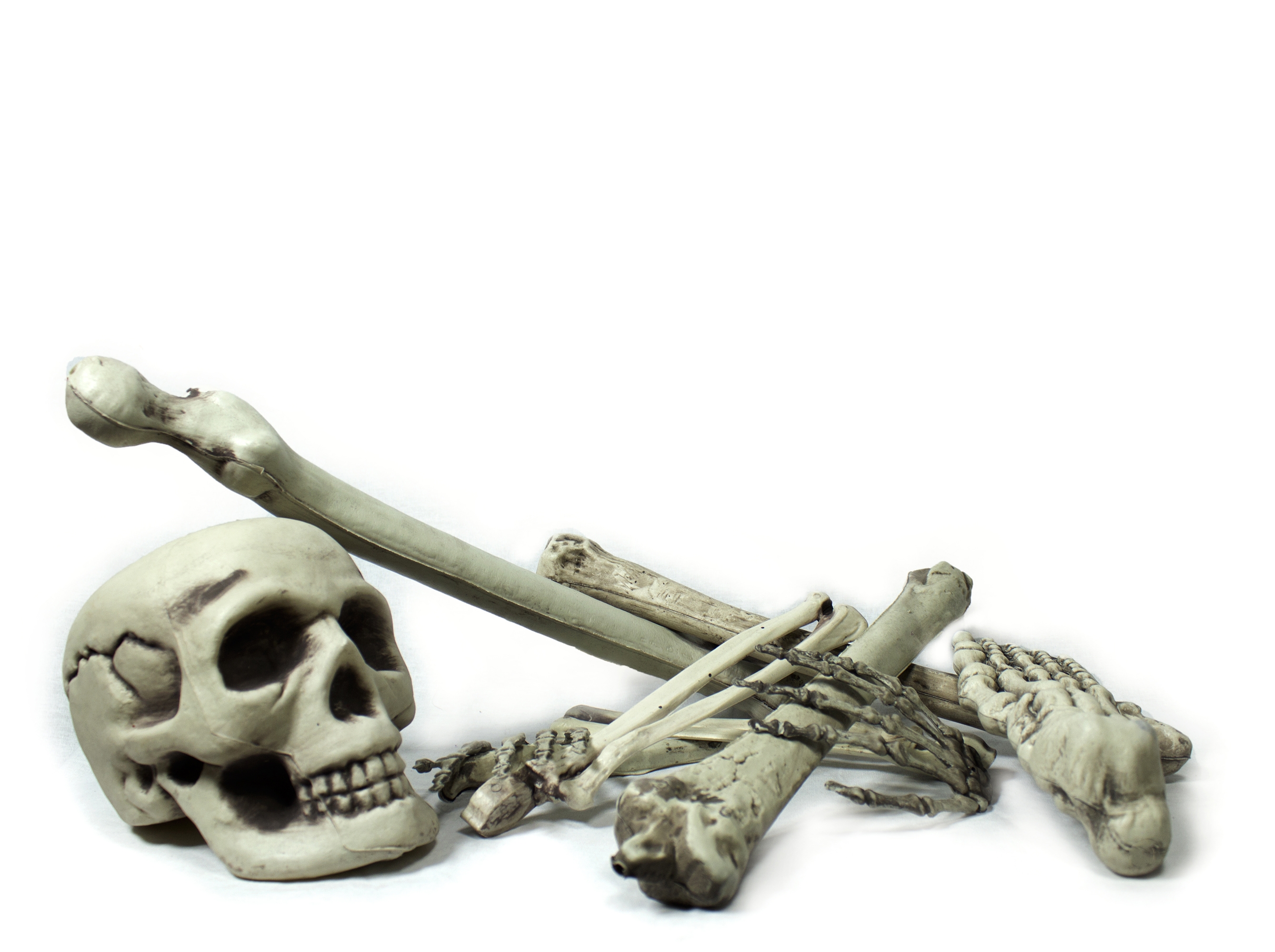 Кости выполнены в бежевом грязном цвете.