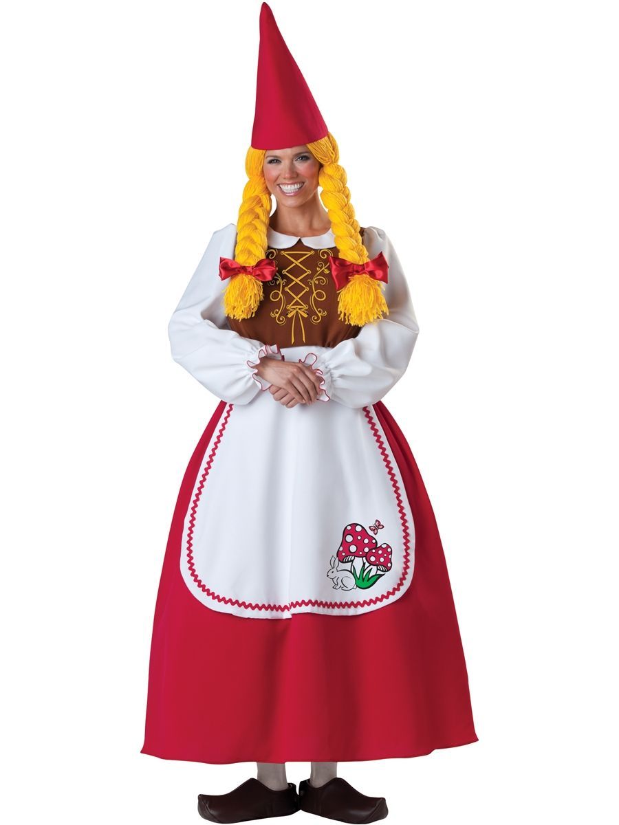 Костюм очаровательного гнома женский - это великолепное платье с белоснежными рукавами и милым фартучком с принтом и подъюбником. Красная шляпа в виде конуса и яркий желтый парик с косичками и бантиками делает ваш образ необычайно милым. Костюм очаровательного гнома идеальный вариант для детских утренников, карнавальных и тематических вечеринок. Приобретите на нашем сайте костюм садового гнома для своего партнера и вы, несомненно, станете самой незабываемой парой вечера. В комплекте идут чехлы на обувь.