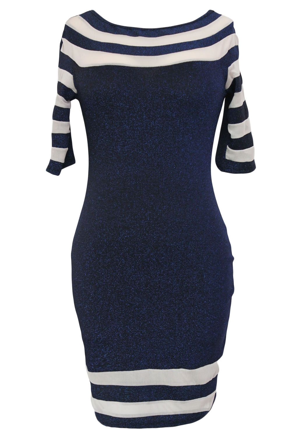 Синие клубное платье прошито блестящей синей нитью в тон модели, дополнительно декорировано вставками из полупрозрачной ткани телесного цвета. Незаменимый выбор для любой тусовщицы.