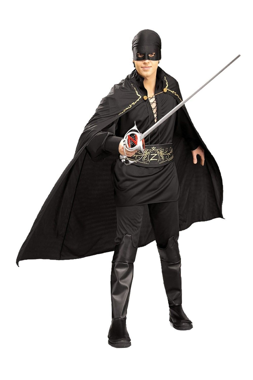 Костюм бесстрашного Зорро поможет вам создать образ неизвестного супер героя, защитника всех угнетенных. В костюм бесстрашного Зорро входит рубашка, штаны с накладками на сапоги, плащ, пояс и головной убор с повязкой на глаза.