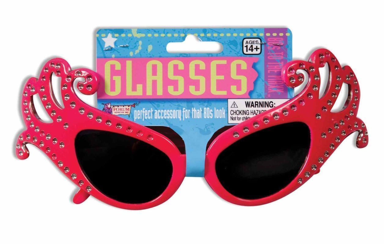 Розовые очки 80-х со стразами могут стать хорошим дополнением к костюмам бабочек и фей. Очки выполнены в розовом цвете с завитушками, на которых расположены маленькие стразики, что добавляет некого волшебства в эти очки.