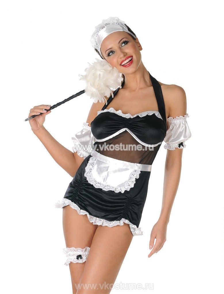 Костюм обаятельной горничной станет настоящим подарком для влюбленных. В костюм входит: декоративные мини-рукава, подвязка, передник, мини-колпак на голову. Дополните образ щеточкой для пыли и чулочками.