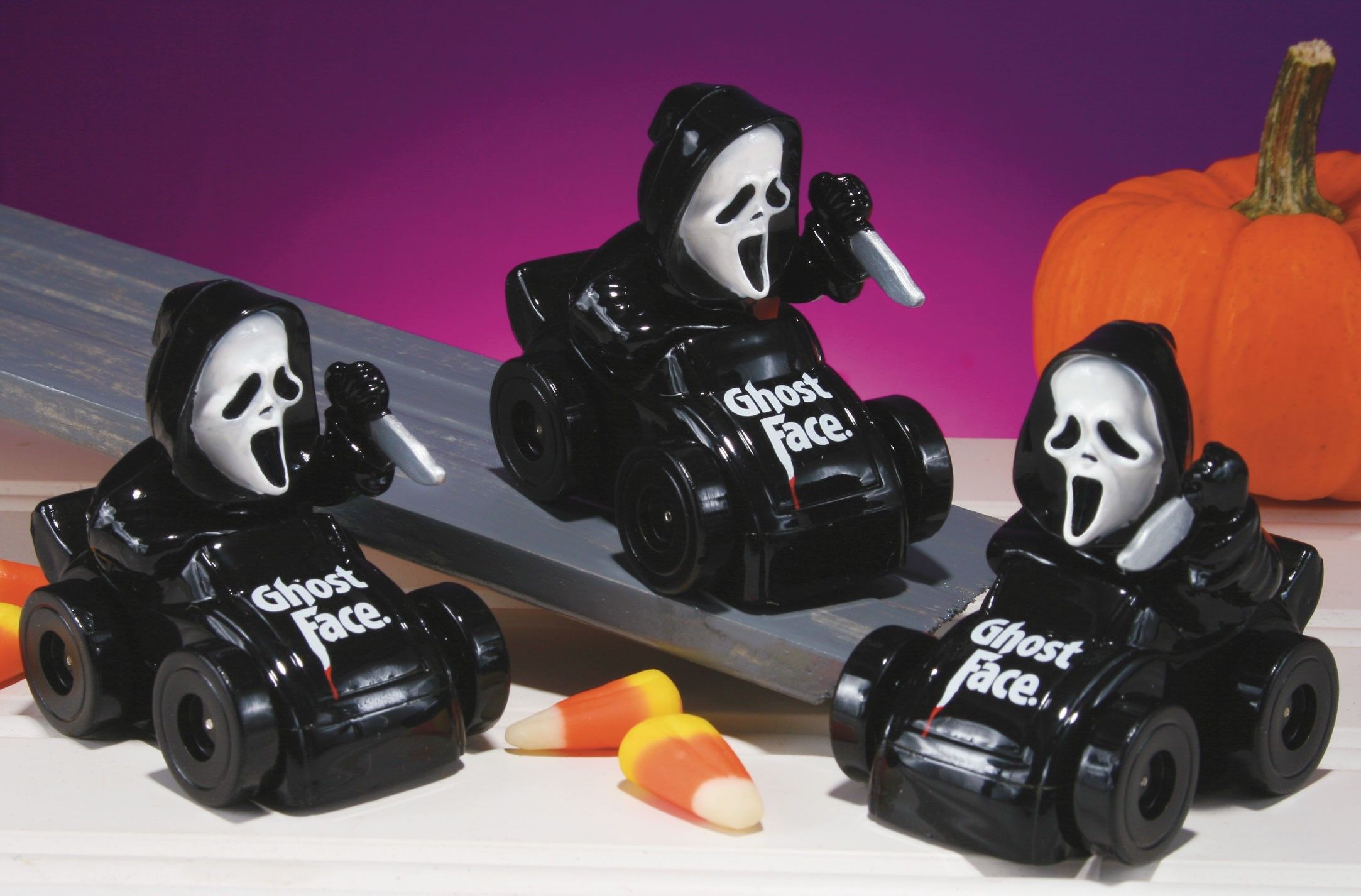 Фигурка Крик рейсер - это забавная декорация, которая внесет позитив на вашу вечеринку в честь Хэллоуина. Фигурка представляет собой Крика с ножом в руке, который сидит за рулем гоночной машинки. На машинке имеется надпись: "Ghost Face". Фигурка выполнена в черно-белом цвете.