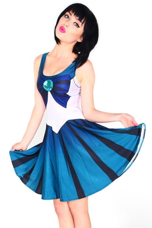 Синее платье Сейлор Мун в стиле аниме-манга станет неповторимым украшением своей обладательницы на любом тематическом мероприятии. Платье украшено принтами с двумя классическими бантами.