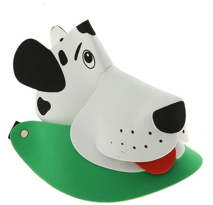 Козырек зеленого цвета с собакой породы далматинец. Козырек с собакой подойдет для детских праздников и веселых вечеринок. Козырек сделан из мягкого пластика и имеет размер 18х15х18 см.