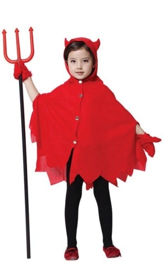 Детский костюм игривого чертенка для самых озорных и вредных! Костюм состоит из красного плаща с рваными краями, прорезями для рук и капюшоном с рожками и красных перчаток. Другие аксессуары Вы также можете приобрести в нашем магазине.