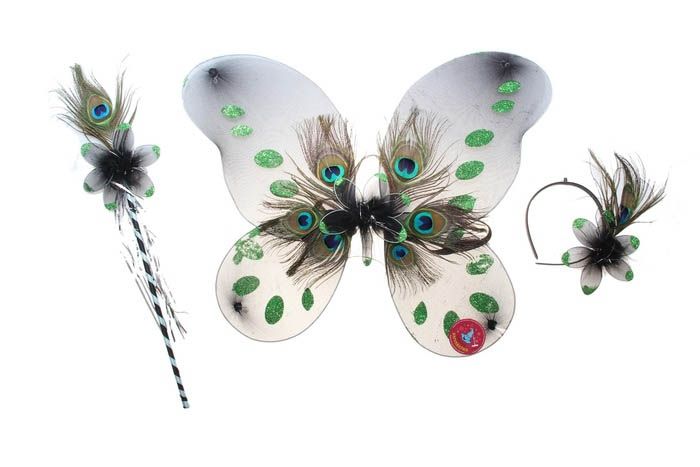 Карнавальный набор бабочка включает в себя крылья, ободок и палочку.
