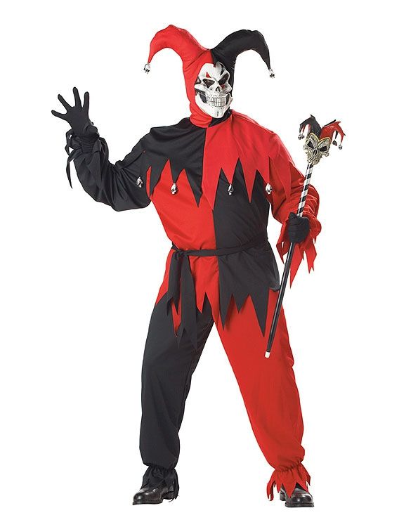Костюм дьявольского злобного шута. Этот парень не шутит. Он не даст никому скучать. В состав костюма входит рубашка, брюки, пояс на талию, головной убор шута и маска. Материал: 100% полиэстер.