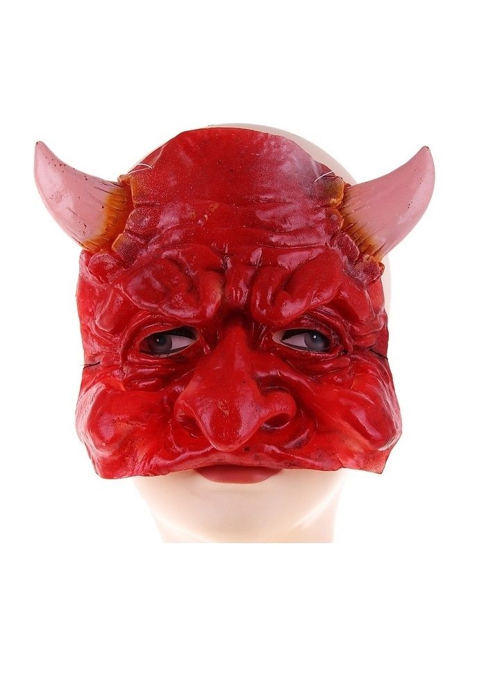 Маска черта с рогами яркого красного цвета. Маска изготовлена из пластика и имеет размер 18х17 см. Маска послужит прекрасным дополнением к костюмам на вечеринках Хэллоуин или Пятницы 13.