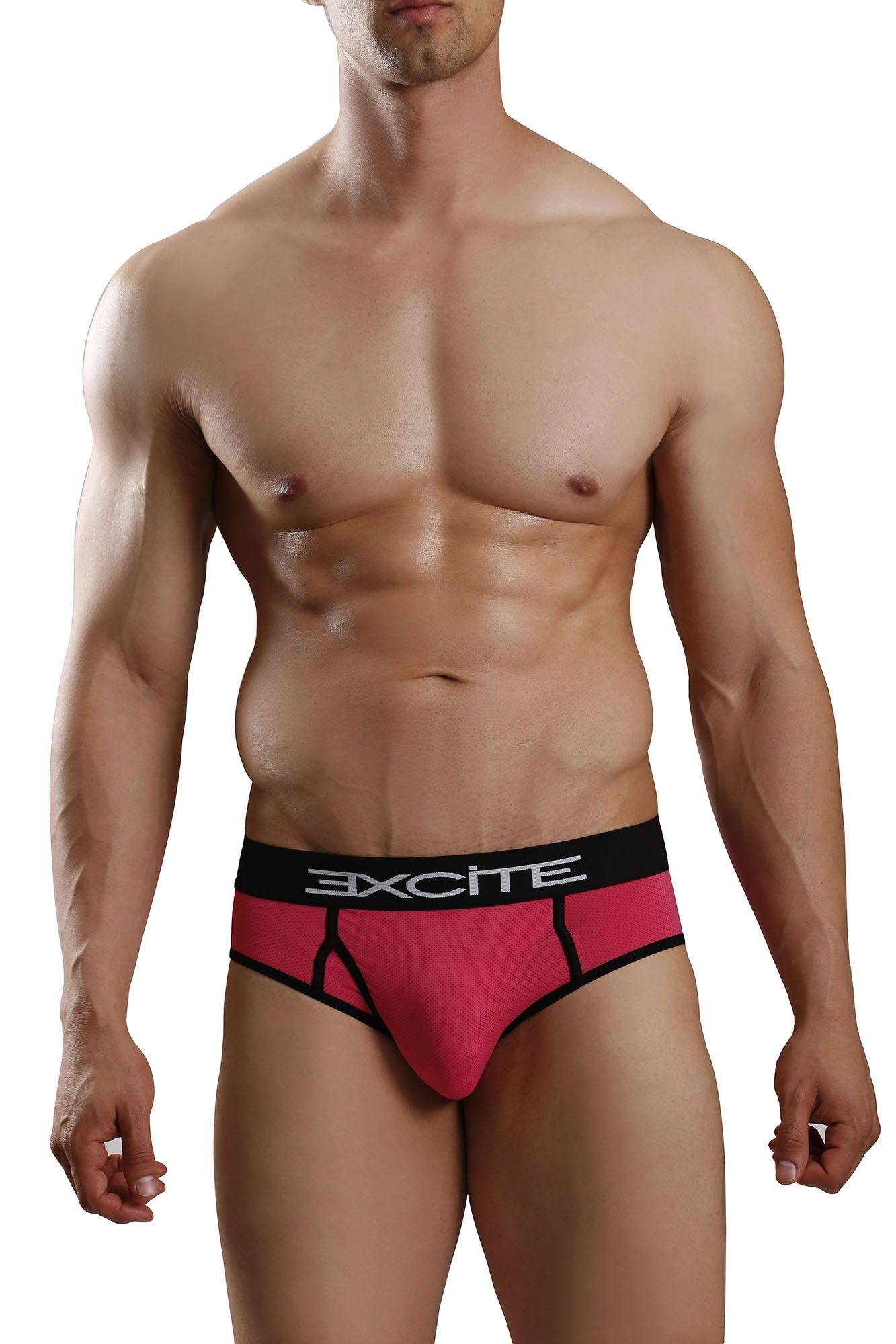 Розовые мужские трусы с вырезом выполнены из мягкой ткани розового цвета с черной отделкой. Сзади на трусах имеется большой вырез. Трусы с черной эластичной резинкой с логотипом.