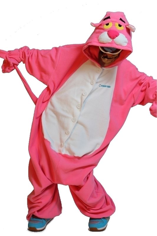 Кигуруми Розовой Пантеры подходит для катания на коньках, сноуборде и лыжах, а также для активного отдыха. Также он подойдет для сна.