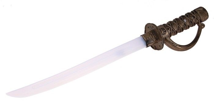 Сабля самурая со световыми эффектами. Сабля сделана из пластика и имеет размер 10х6,5 х56 см.