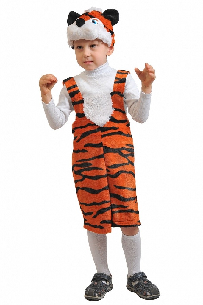 Плюшевый костюм тигренка - яркий мягкий костюм для детей, который отлично подойдет для детских утренников и подобных мероприятий. В комплект костюма входит комбинезон с тигровой расцветкой и шапочка-маска, которая выполнена в виде головы тигренка.
