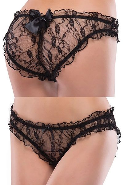 Трусики сетчатые с бантом имеют цветочный рисунок и украшены сзади бантом. Резинка создает сексуальный эффект черной оборки. При ношении дискомфорта не создают, благодаря ткани хорошего качества.