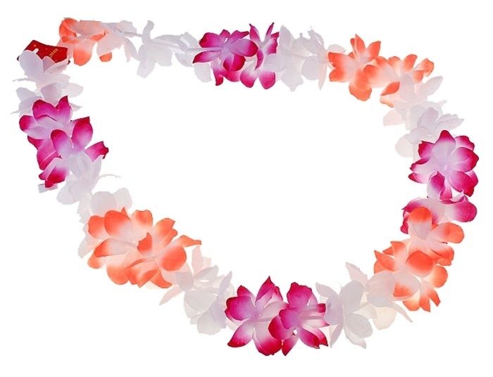 Ожерелье трехцветное для вечеринок в гавайском стиле. Размер ожерелья 55 см. Ожерелье станет отличным дополнением к пляжным костюмам и сделать праздник ярким и необычным.
