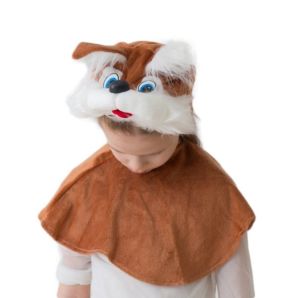 Шапка-маска Белка для детей выполнена из мехового коричневого материала. Ей можно дополнить костюм, а также одеть отдельно от наряда.