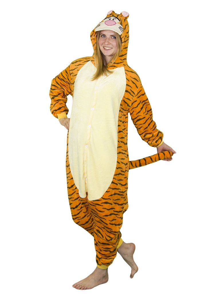 Пижама кигуруми Тигры из Винни-Пуха представляет из себя комбинезон с полосатой раскраской и хвостом, на капюшоне изображена добродушная мордочка тигры, закадычного друга Вини-пуха. Отлично согреет, когда за окном сильный мороз или же станет отличным выбором для пижамной вечеринке.
