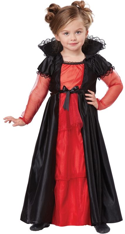 Костюм девочки вампира включает в себя платье с кружевным воротником. Качественные материалы и приятный дизайн придадут образу юной вампирши реалистичности.