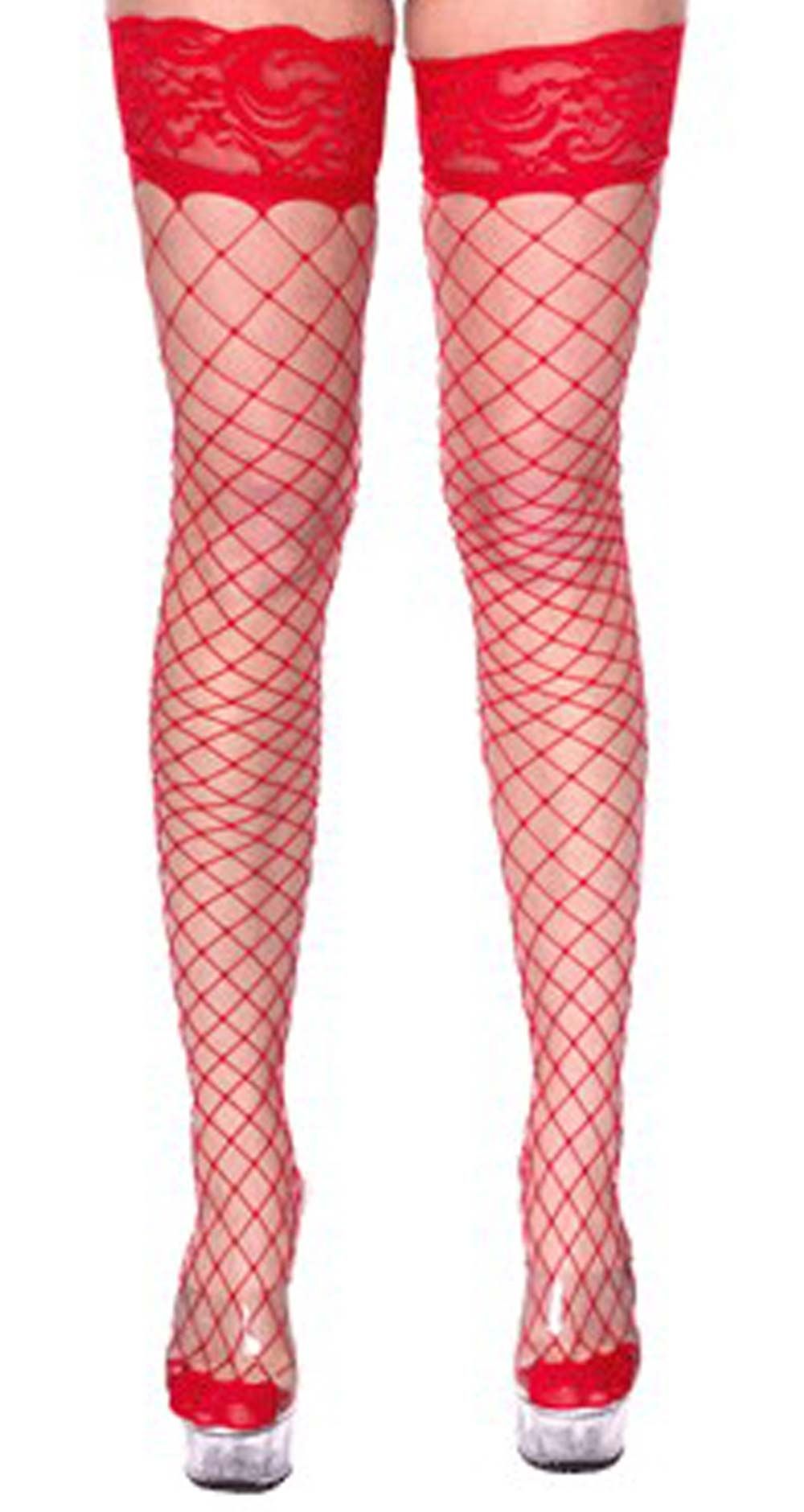 Элегантные чулки красные в сетку. Отлично подойдут в качестве дополнения костюма медсестры.