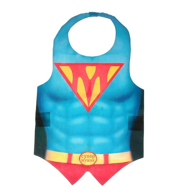Жилет Супер Мужчины - это яркий забавный жилет с изображением мускулистого торса мужчины в синем костюме супергероя с красно-желтой буквой "М" на груди. Послужит отличным аксессуаром, привлекающим к себе всеобщее внимание на корпоративе и других вечеринках, и станет отличным подарком и сувениром.