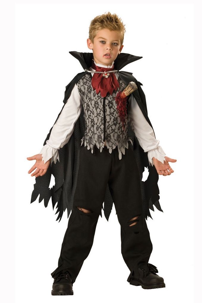 В детском костюме убитого вампира вам не будет равных на любом увеселительном мероприятии. В детский костюм убитого вампира входят: жилет, плащ, жабо, брюки.