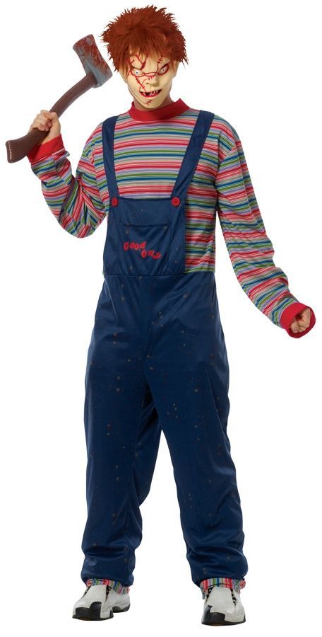 Костюм куклы Чаки включает в себя знаменитый синий комбинезон с полосатой кофтой. Вы, наверняка, помните эту жуткую куклу? Теперь у вас есть возможность побывать в его роли.
