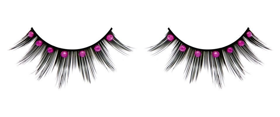 Славные, красиво оформленные ресницы со стразами розового цвета деликатно впишутся в тематику вашего образа добавив ему умеренной загадочности.