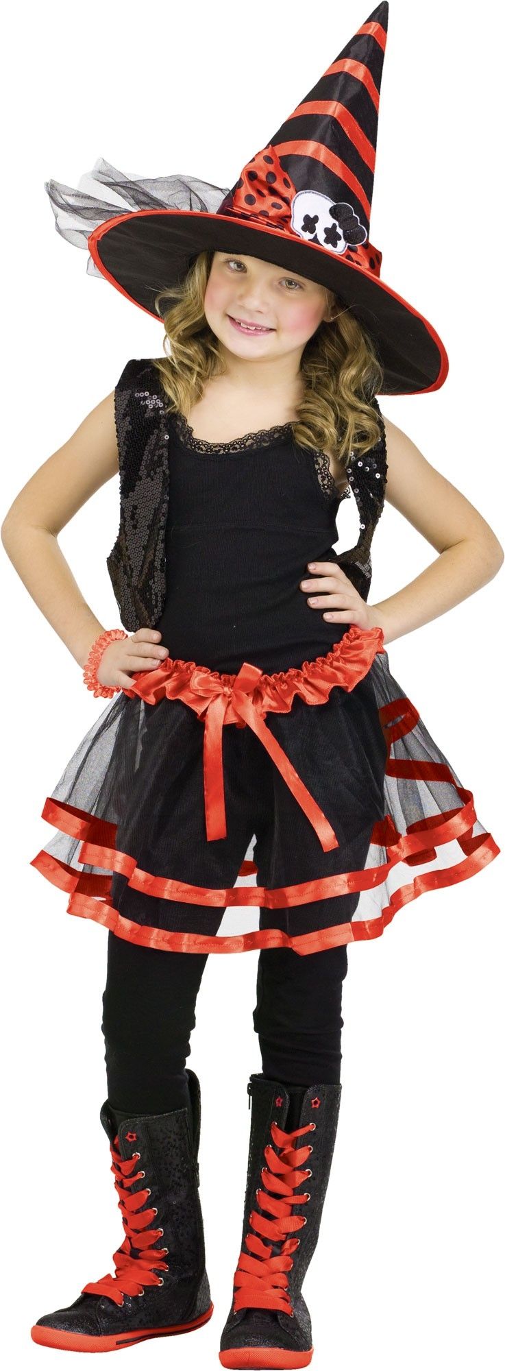 Юбочка Туту и шляпа с оранжевой лентой - это набор, в который входит двухслойная юбочка из черного сетчатого материала с красной каймой и резинкой на поясе. Также в наборе имеется высокая конусная шляпа черного цвета в красную полоску. Шляпа украшена бантиком. Такой набор идеален для создания образа ведьмочки.