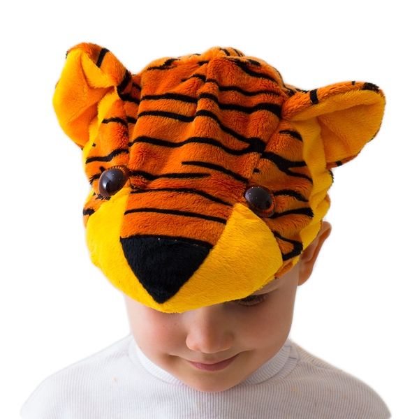 Шапка-маска Тигренок - мягкая яркая шапочка с мордочкой тигренка, выполненная в коричневом цвете с черными полосками.