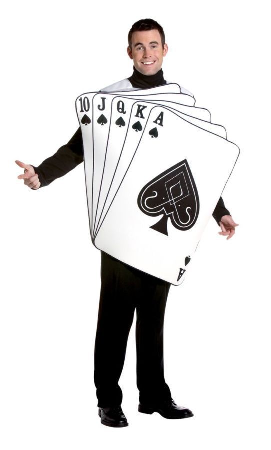 Костюм Флеш Рояль представляет собой тунику, которая сделана в виде игральных карт пиковой масти. Такой забавный костюм подойдёт для различных выступлений, клубных вечеринок и других мероприятий.