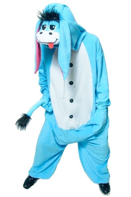 Кигуруми Ослика Иа прекрасно подойдет для катания на сноуборде, лыжах и коньках, а также просто для сна в холодную погоду. Можно одевать поверх горнолыжных костюмов.