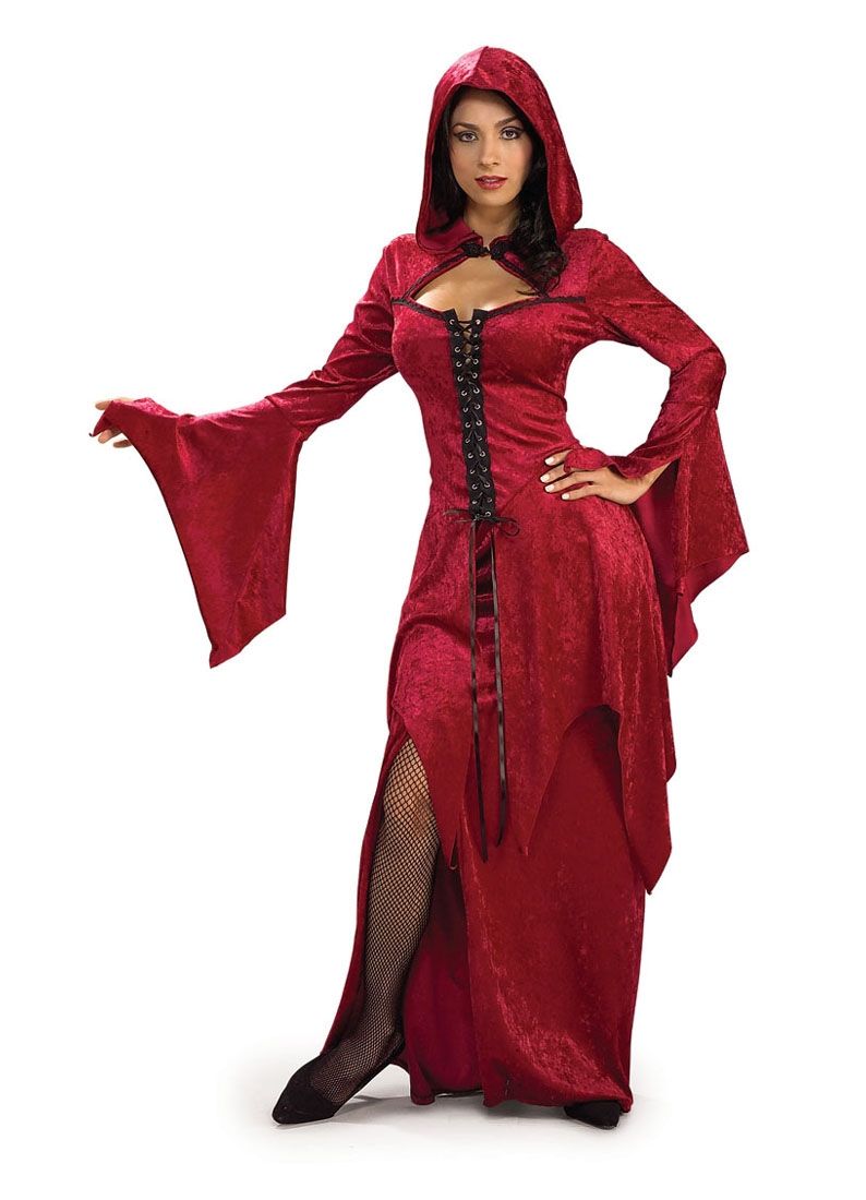 В костюм богини сумрака входит: бархатное закрытое платье со шнуровкой.