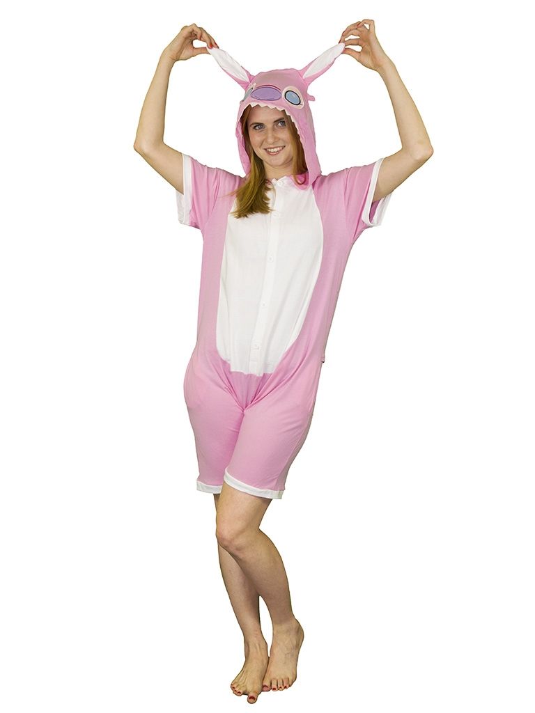 Пижама-кигуруми Розовый стич - яркая розовая пижама доброго монстрика Стич из мультфильма "Лило и Стич". Пижама-кигуруми застегивается спереди на маленькие пуговицы. У кигуруми короткий рукав, капюшон с мордочкой и белыми ушками.