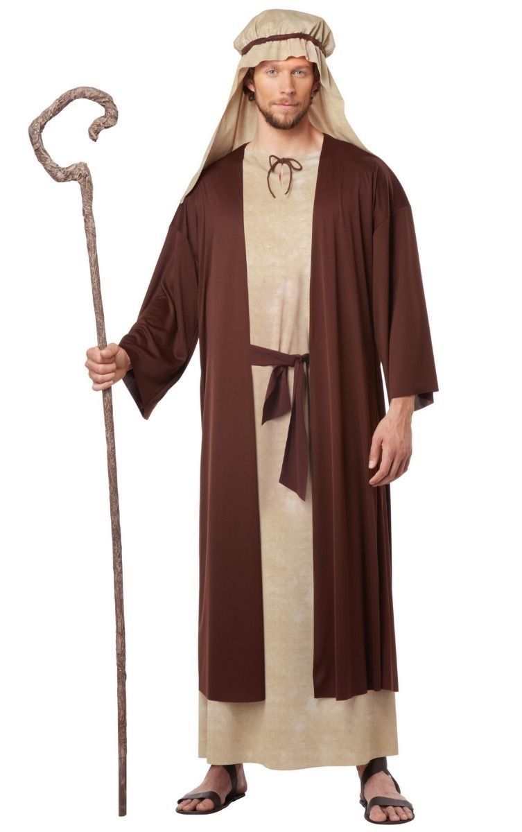 Костюм Святого Иосифа для взрослых подойдет для Рождественских праздников и спектаклей. Костюм включает в себя длинную бежевую робу с пришитым коричневым халатом и поясом, а также бежевый головной убор.