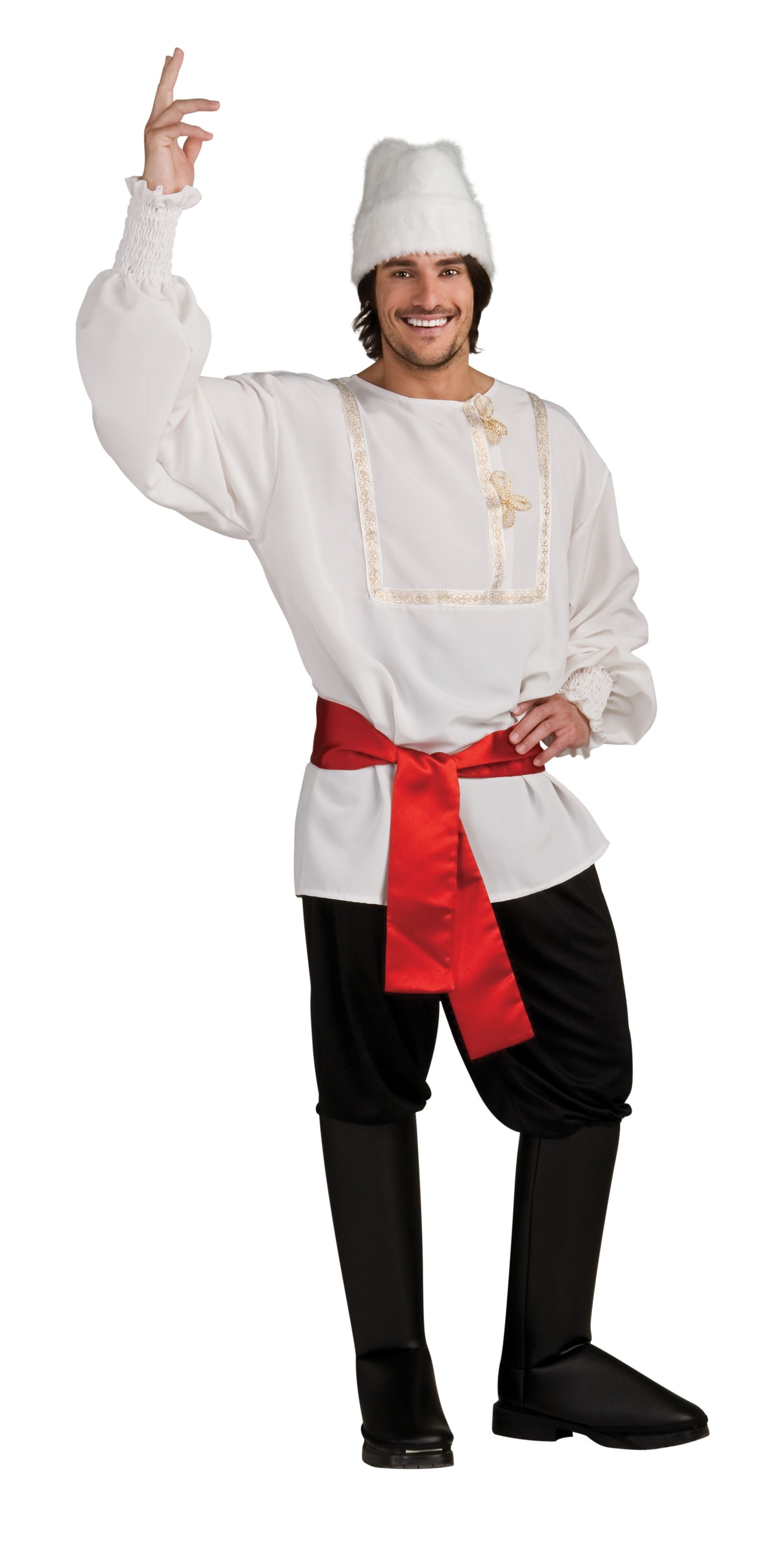 В костюм белого казака входит рубашка, штаны с накладками на сапоги, шляпа, пояс.