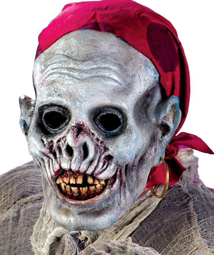 Маска пирата-скелета отлично подойдёт для маскарадов и прочих вечеринок, также станет хорошим прикрытием на Хэллоуин. Маска выполнена в бледно-голубом цвете, который говорит о том, что этот пират уже давно не жилец. В ухе серьга, красный платок, кривые жёлтые зубы, кровавые пятна - всё это завершающие штрихи в маске.