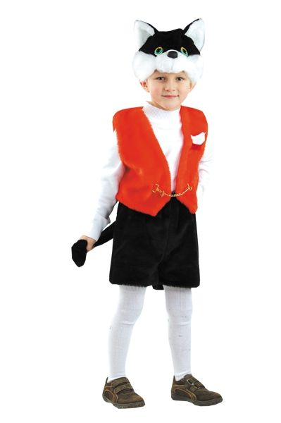 В комплекте костюма миленького котёночка имеются чёрные шортики, красный жилет и маска котёночка.
