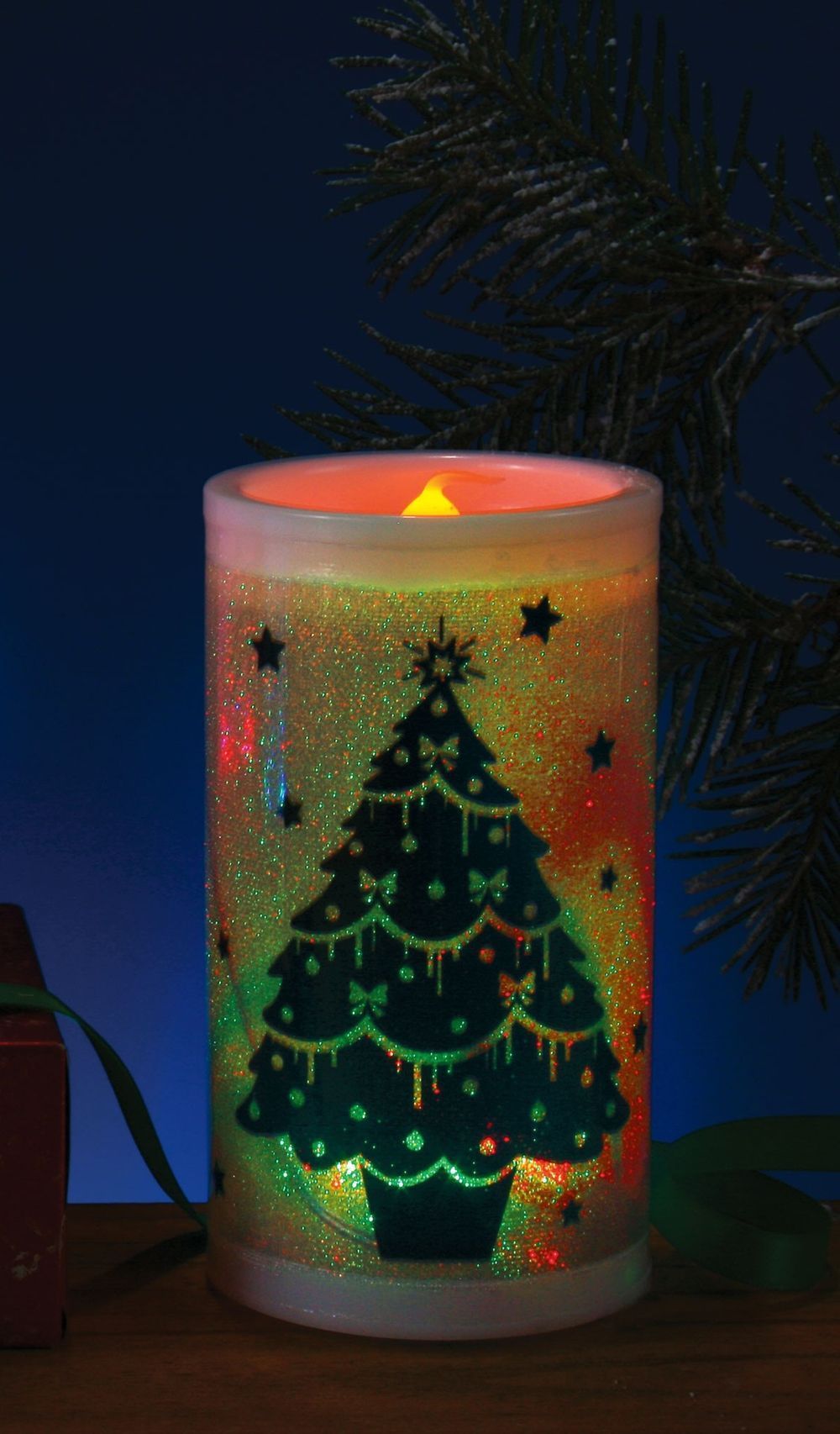 Декоративная свеча с новогодней елкой. На батарейке. 3АА батарейкив комплект не входят. Высота 15 см.