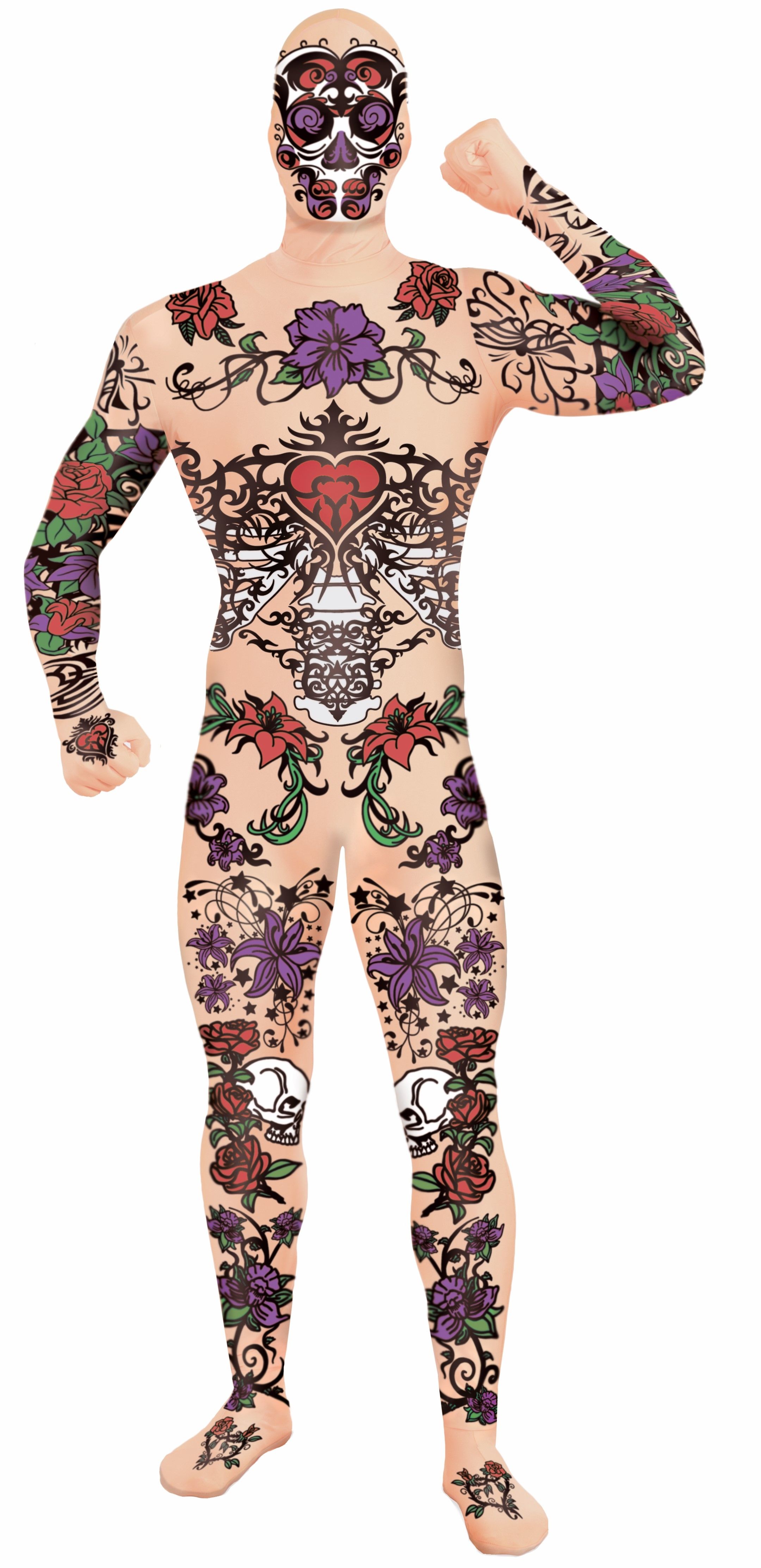 Костюм второй кожи Татуированный парень - эластичный комбинезон телесного цвета, который покрывает все тело. Костюм с яркими принтами в виде цветных узорчатых татуировок на всем теле.