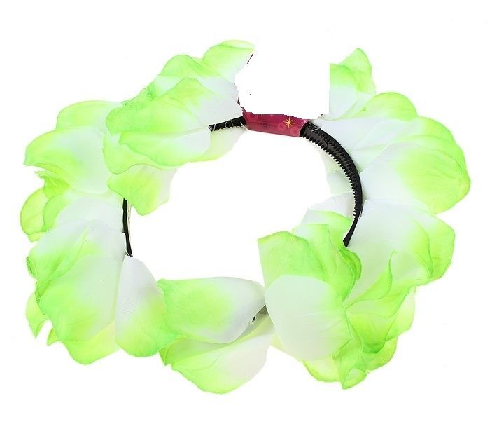 Милый ободок с бело-салатовыми цветами для пляжных и карнавальных вечеринок. Ободок сделан из пластика.