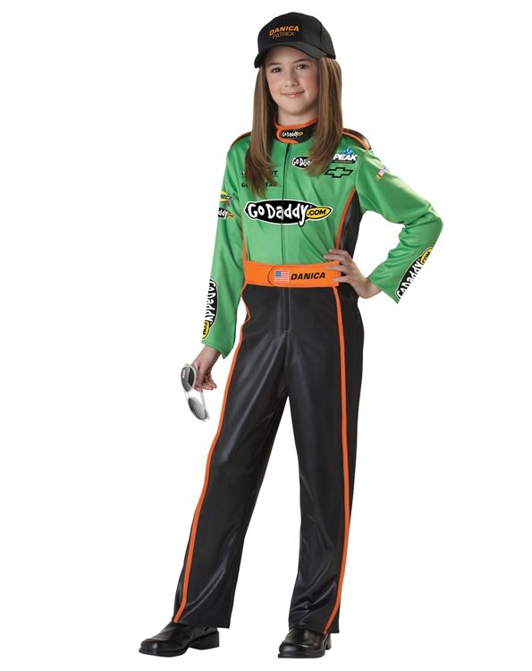 Детский костюм гонщицы Даники Патрик понравится всем спортивным девчонкам. В комплекте имеется черно-зеленый комбинезон с оранжевыми полосками, оранжевый пояс, черная бейсболка и очки в белой оправе с логотипом. Такой костюм ваша девочка сможет надеть для спортивных праздников, тематических маскарадов, а также на гонки.