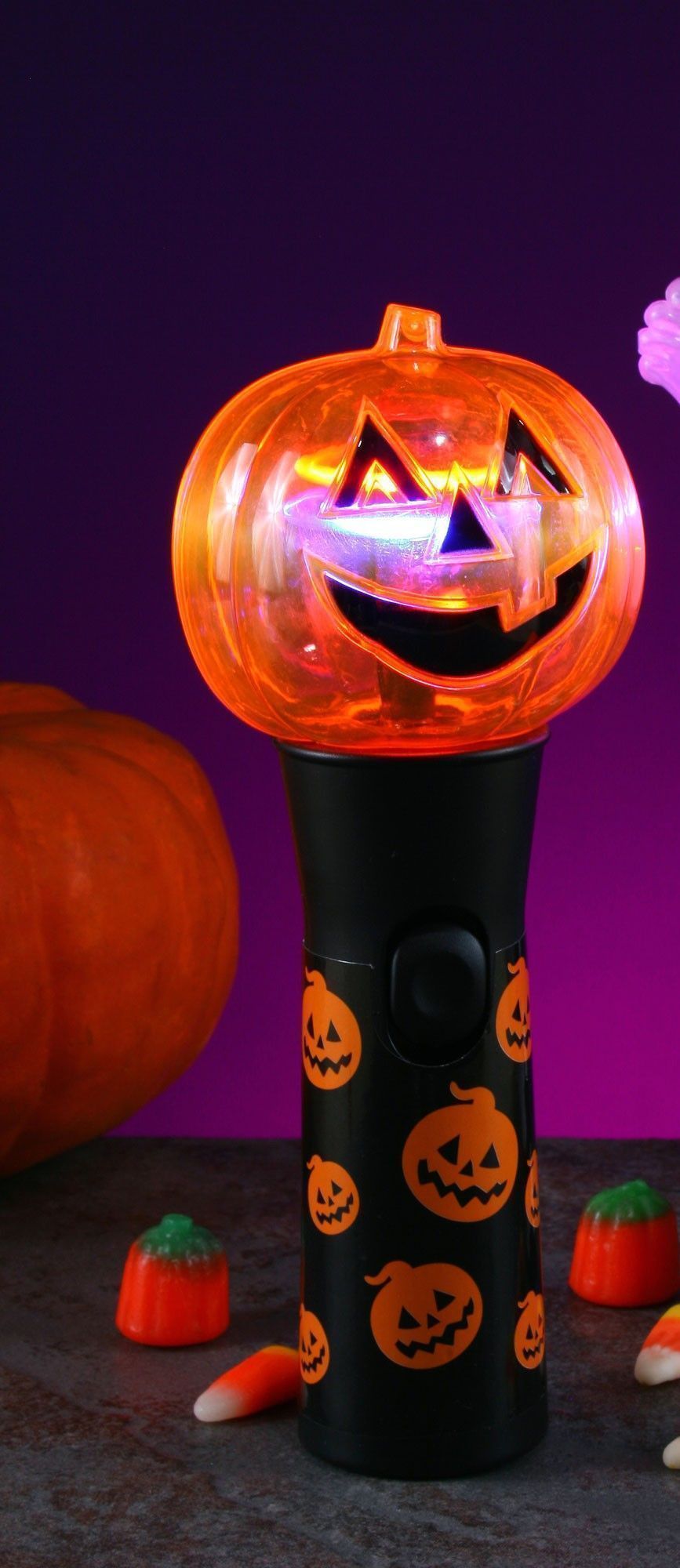 Радужный фонарик Тыква идеален для вечеринок в честь Хэллоуина. Фонарик выполнен в виде тыквы с веселой мордочкой, которая прикреплена к рукоятке с изображениями оранжевых тыковок. Фонарик светится различными яркими цветами. В наличии ЧЕРНЫЕ И САЛАТОВЫЕ РУКОЯТКИ.